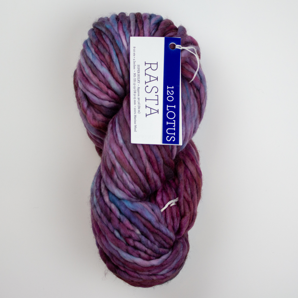 Rasta in Spanish means “dreadlock”, and is also how we refer in Spanish to a very thick cord like our yarn. A lightly-fulled single-ply yarn of magnum proportions! Whip out a super-cozy accessory in just hours with this super-sized delight of a yarn. Our premium Uruguayan merino is just as soft as ever, and Rasta comes in a range of our unique “watercolor multi” colorways as well as a rainbow of semi-solid basics. Unbelievably squishy, this is the yarn to turn to when you want the ultimate in warmth (or the ultimate in speed!)