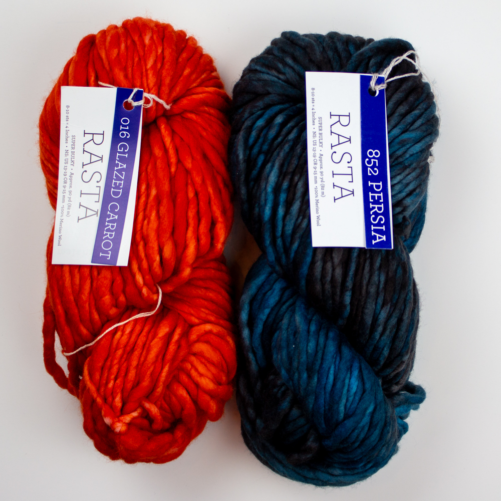 Rasta in Spanish means “dreadlock”, and is also how we refer in Spanish to a very thick cord like our yarn. A lightly-fulled single-ply yarn of magnum proportions! Whip out a super-cozy accessory in just hours with this super-sized delight of a yarn. Our premium Uruguayan merino is just as soft as ever, and Rasta comes in a range of our unique “watercolor multi” colorways as well as a rainbow of semi-solid basics. Unbelievably squishy, this is the yarn to turn to when you want the ultimate in warmth (or the ultimate in speed!)