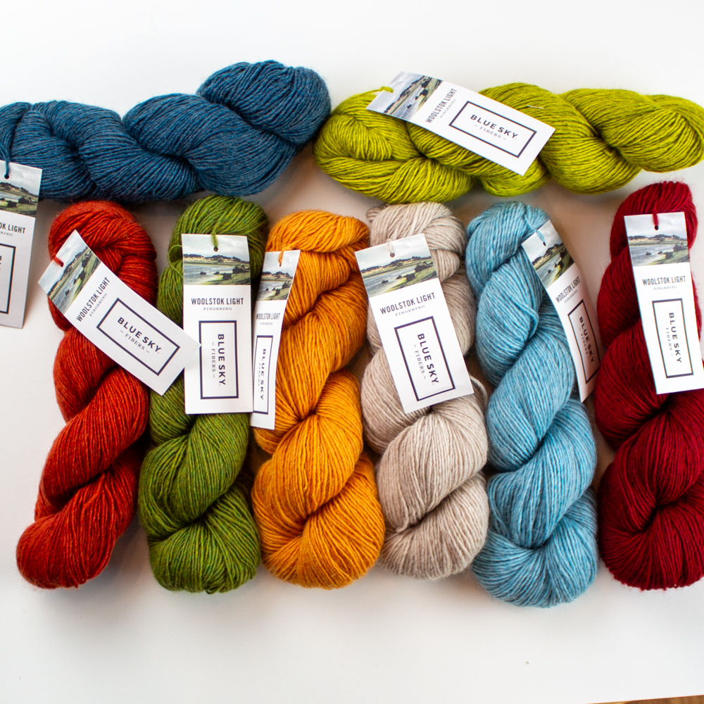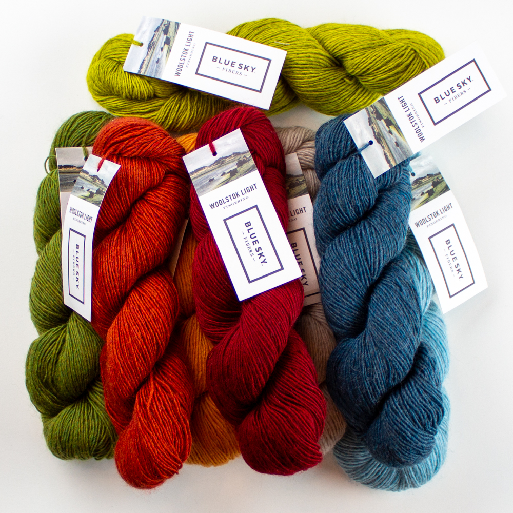 Woolstok Light (100% Fine Highland Wool; 50g/218yds): 1 hank each A, B, C, D, E, F, G, H