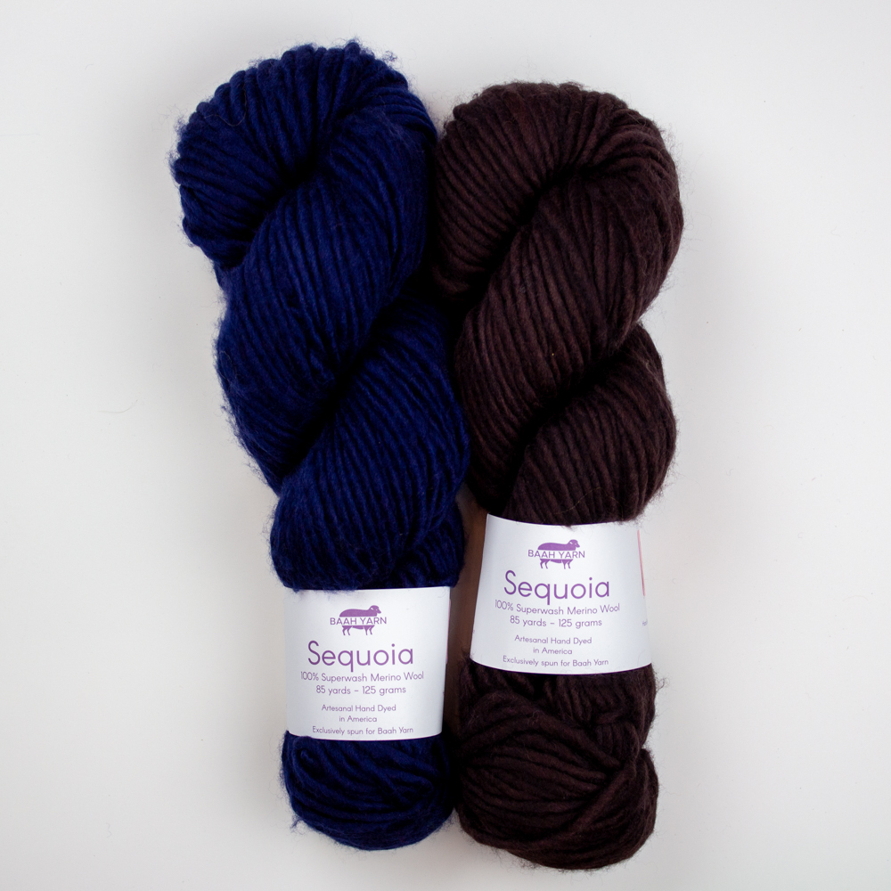 Baah Yarn Sequoia is a super bulky yarn made from 100% superwash merino wool (single ply). Each skein of yarn is carefully hand painted. For best care, hand-wash with cold water.