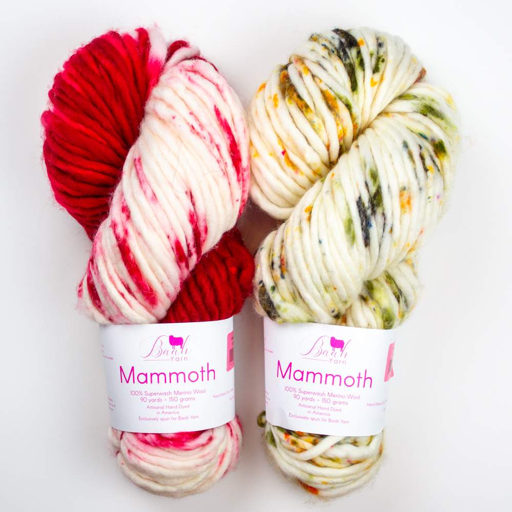 This hand-dyed super duper bulky yarn is a playground of vibrant colors that are bound to ignite your imagination. From eye-popping neons to subtle earthy tones, we’ve created a palette that speaks to your inner artist. Baah Yarn Mammoth is a 100% superwash merino wool, single-ply delight that takes the concept of warmth and luxury to a whole new level. Each skein boasts a generous 90 yards of super duper bulky goodness, making it perfect for creating quick and satisfying projects like hats, scarves, cowls, and statement accessories. With recommended needle sizes ranging from 13 to 19, you can experiment with various stitches, textures, and techniques to create show-stopping projects that reflect your personal style.